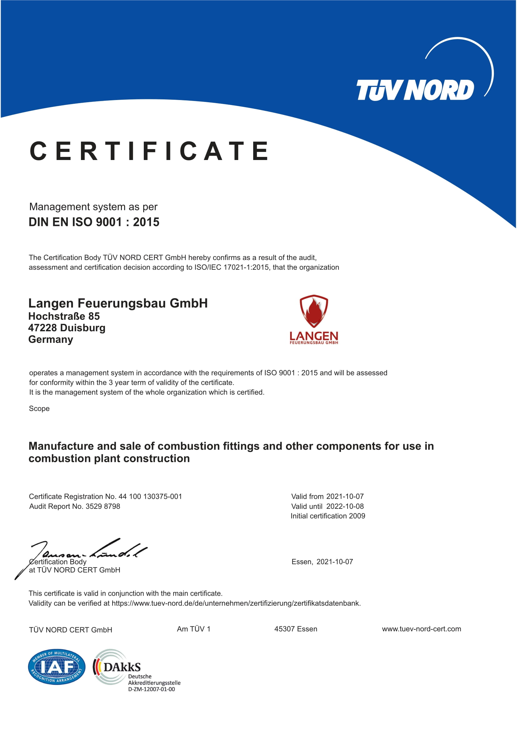 умови постачання і купівлі-продажу обладнання Langen Feuerungsbau GmbH